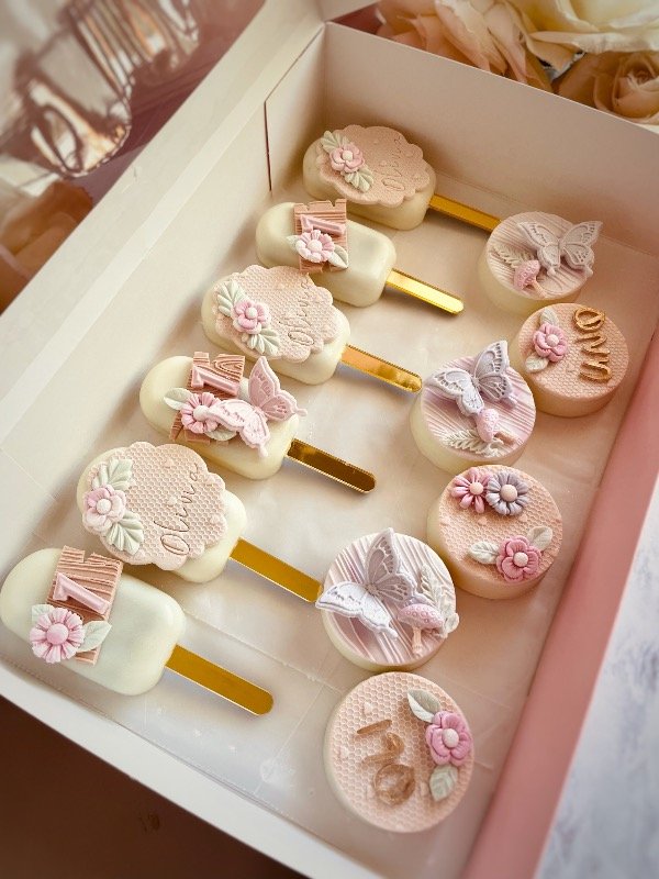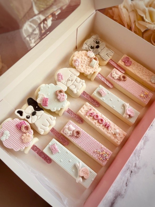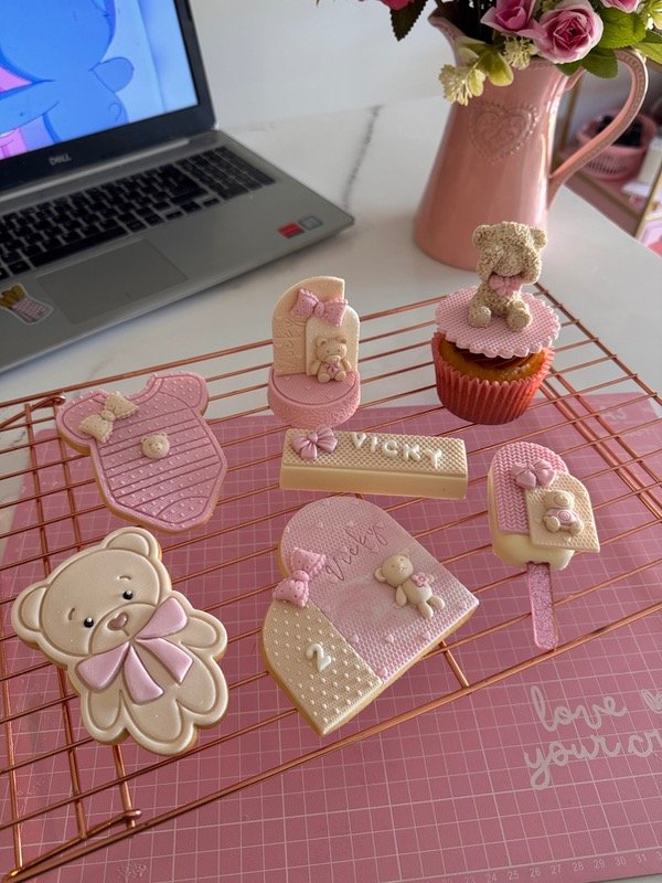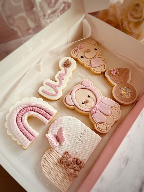 Te llevarás una box con cookies, un cupcake con decoración en 3d, un icepop, una oreo y una oblea💕