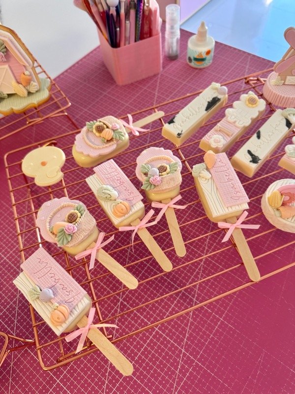 Luego vas a aprender a trabajar el chocolate (baño de repostería) para hacer icepops, oreos y obleas.